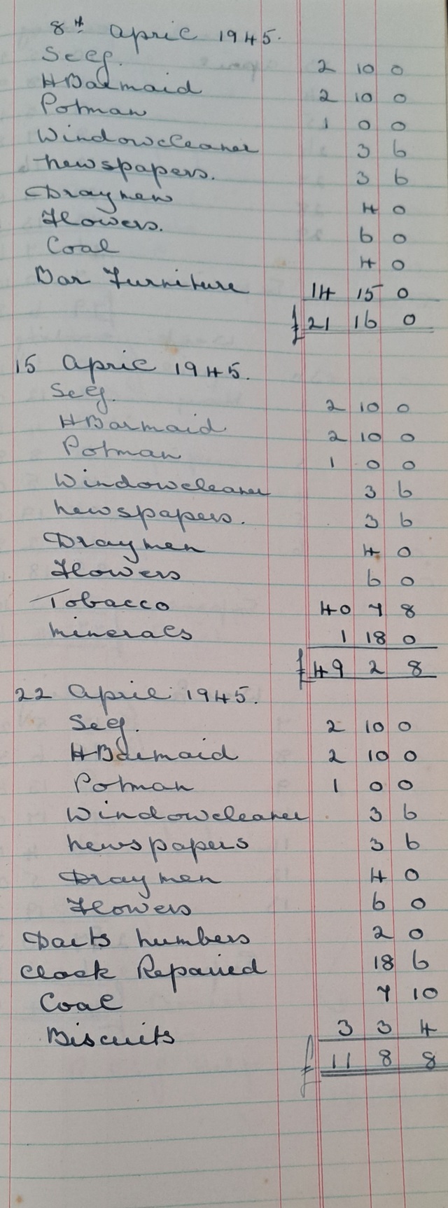 Weekly outgoings, 1945 |